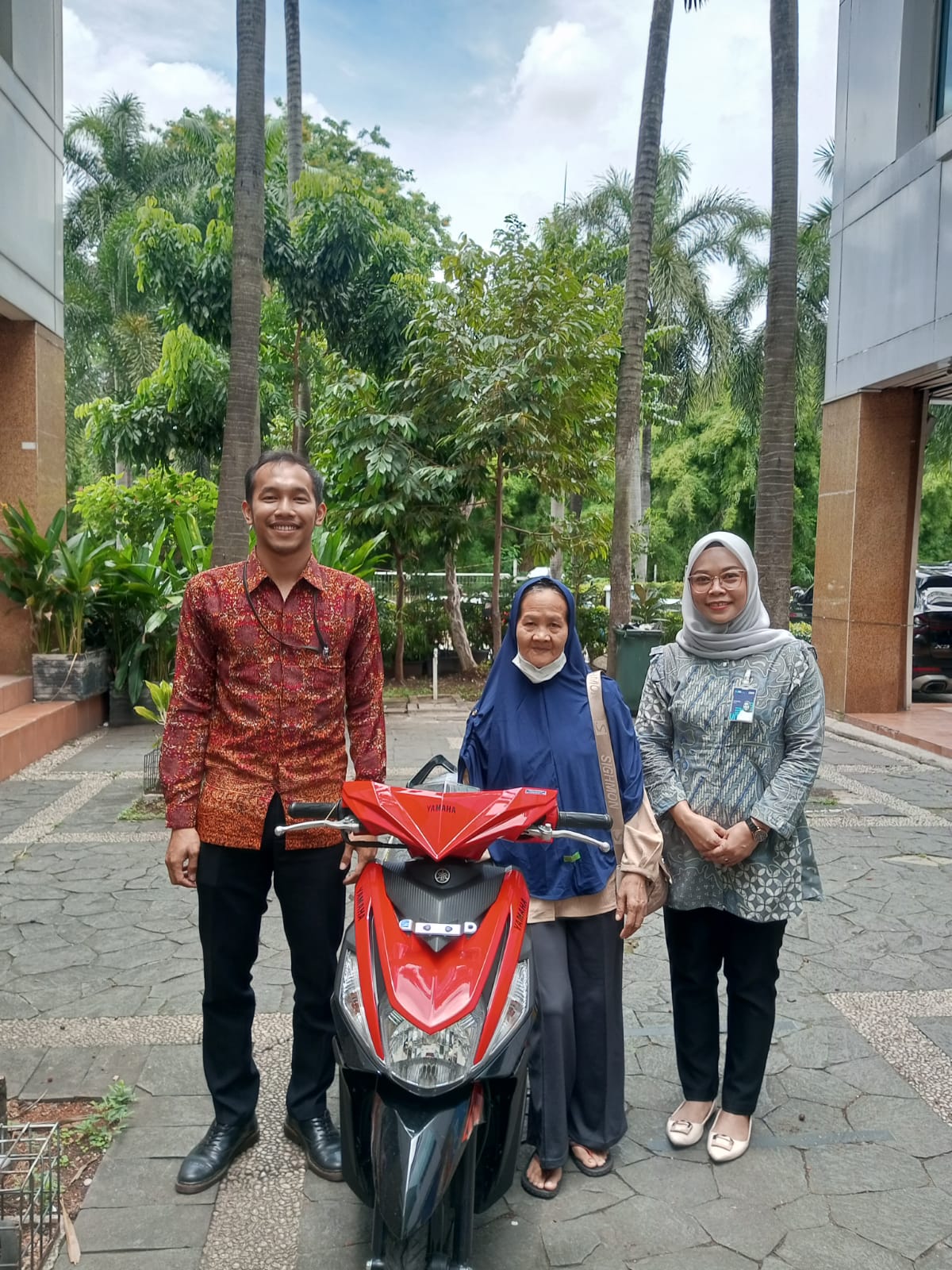 Penyerahan hadiah dilakukan secara langsung oleh perwakilan BRI Kantor Cabang Puni Naga, didampingi oleh Pemimpin Cabang BRI Puni Naga, Anfand Fajar, di halaman kantor cabang.